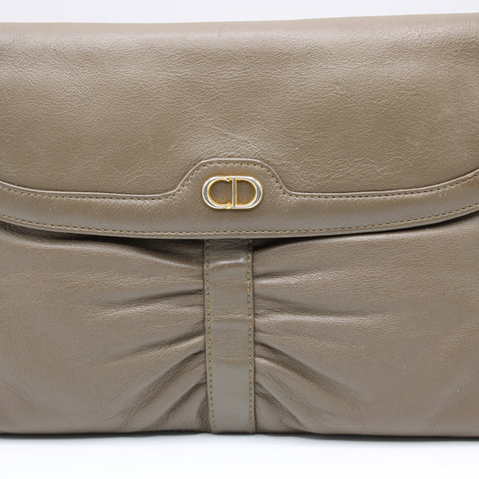 Christian Dior Beige Leather Clutch with Logo on Flap Bag