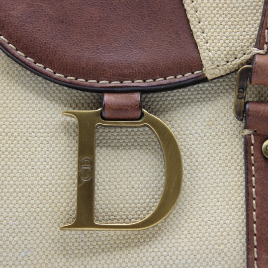 Christian Dior Beige Canvas Brown Leather Saddle Tote Bag