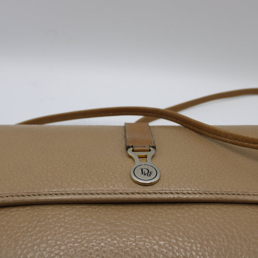 Christian Dior Beige Leather Flap Crossbody Shoulder Bag