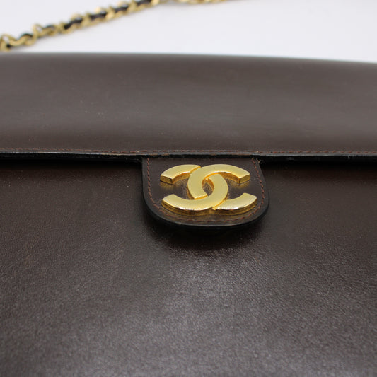 Authentic Chanel Coco Mark Dark Brown Vintage Flap Shoulder Bag