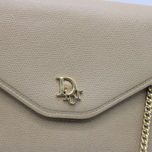 Christian Dior Beige Grained Leather Chain Crossbody Bag