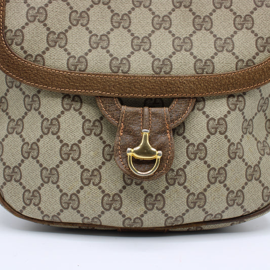 Gucci Beige Brown Gg Canvas Leather Flap Shoulder Bag