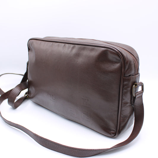 Fendi Brown Leather FF Embossed Crossbody Bag Vintage
