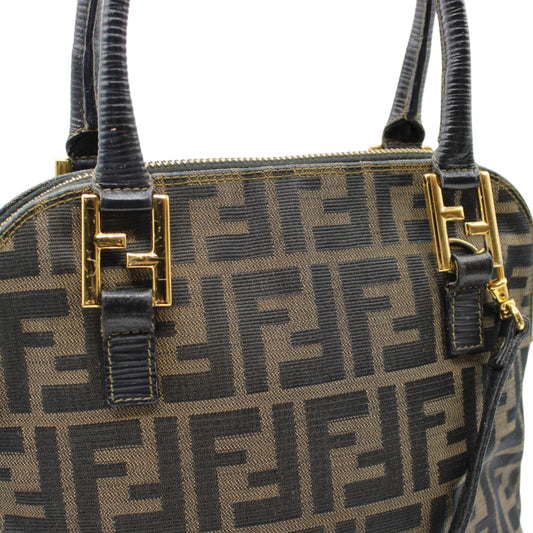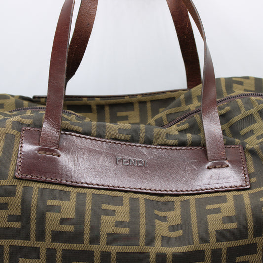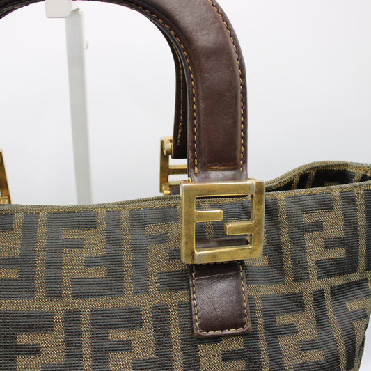 Fendi Brown Zucca Canvas Leather Handles Handbag Luxury Tote