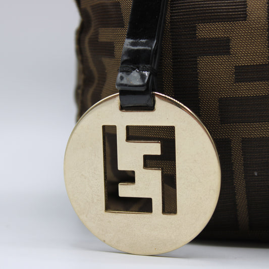 Fendi Brown Zucca Canvas Beige Leather Mini Hand Bag