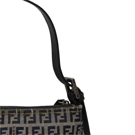 Fendi Brown Zucca Canvas and Navy Leather Mini Shoulder Bag