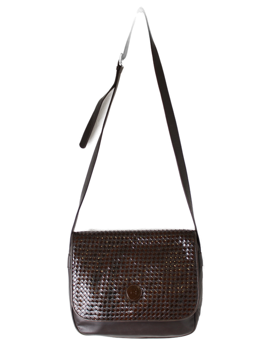 Fendi Brown Woven Leather Flap Crossbody Bag Vintage
