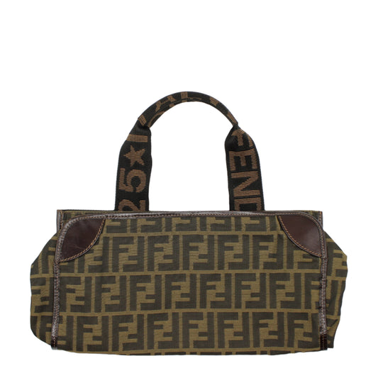 Fendi Brown Zucca Canvas Tote Bag With Leather Handles