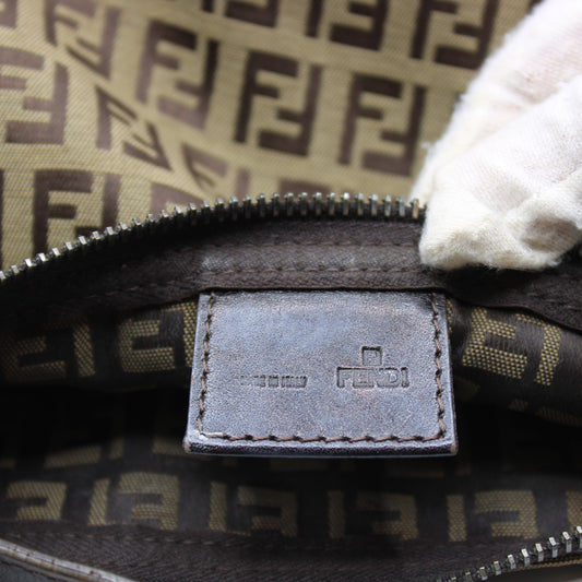 Fendi Brown Zucca Canvas Leather Monogram Tote Shoulder Bag