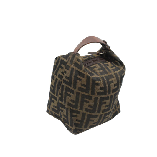 Fendi Brown Zucca Canvas Pouch Handbag With Leather Handle