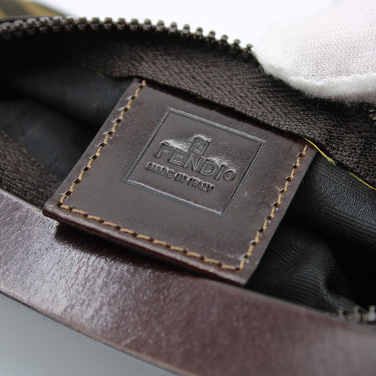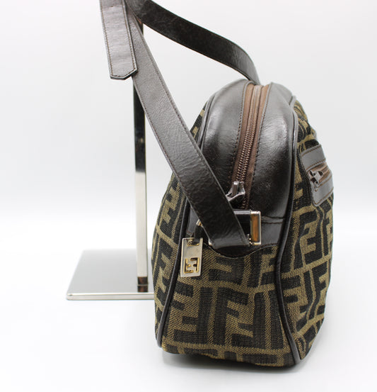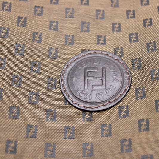 Fendi Zucca Pattern Brown Leather and Canvas Boston Bag Vintage