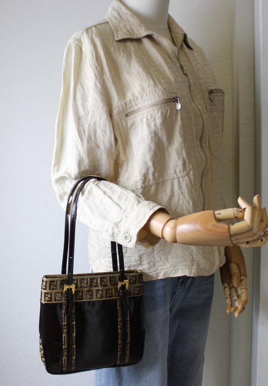 Fendi Zucchino Patent Leather Handbag FF Vintage