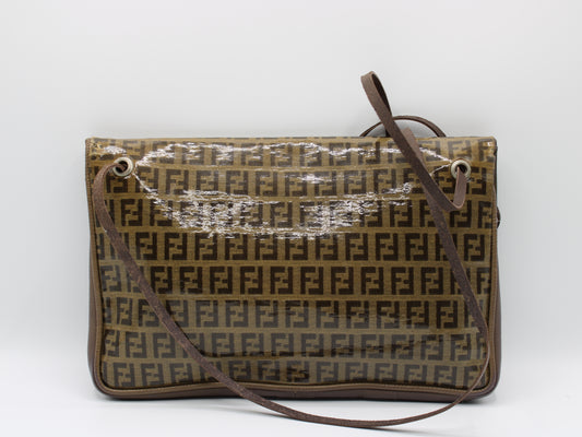 Fendi Zucca FF Canvas Brown Leather Trim Crossbody Bag