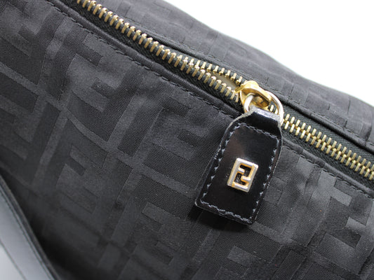 Fendi Zucca Hobo Bag in Black Large Size FF Gold Logo Vintage
