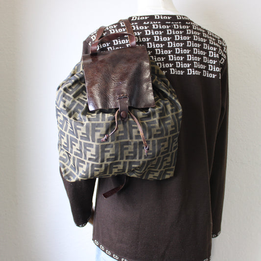 Fendi Zucca Pattern Brown Leather Canvas Backpack