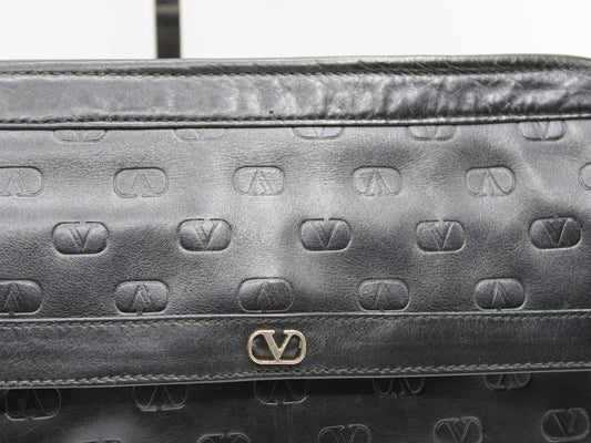 Valentino Black V Embossed Lambskin Leather Crossbody Bag Vintage