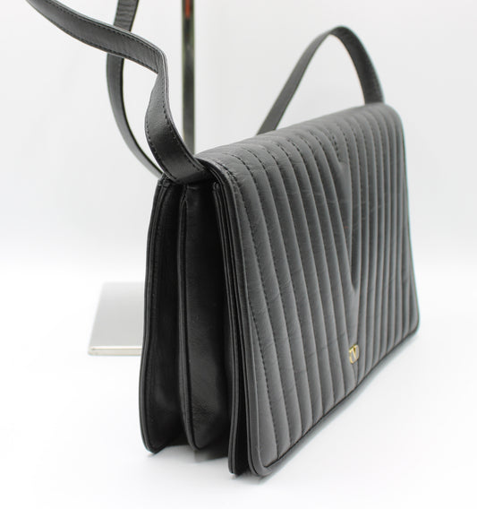 Valentino Bag Black Leather Crossbody Chevron Pattern V Logo Vintage