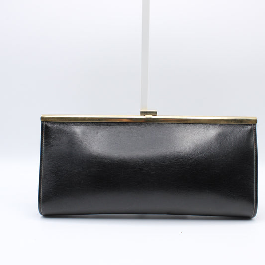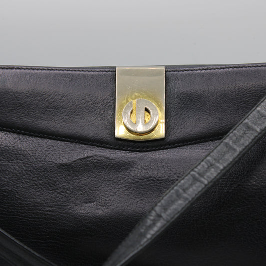 Christian Dior Black Leather Shoulder Bag with Gold-Tone Logo