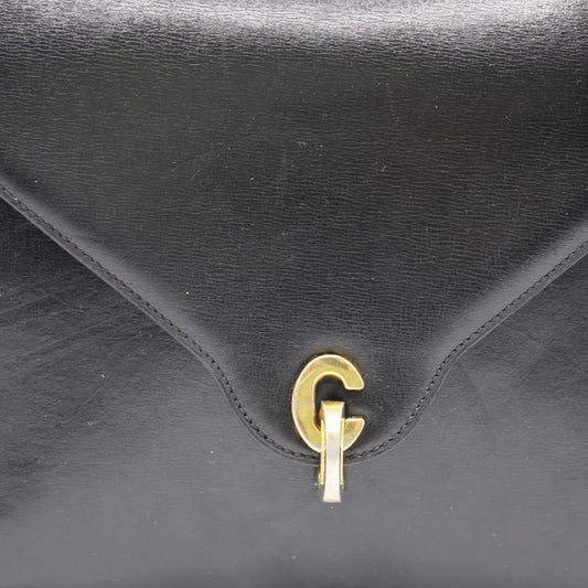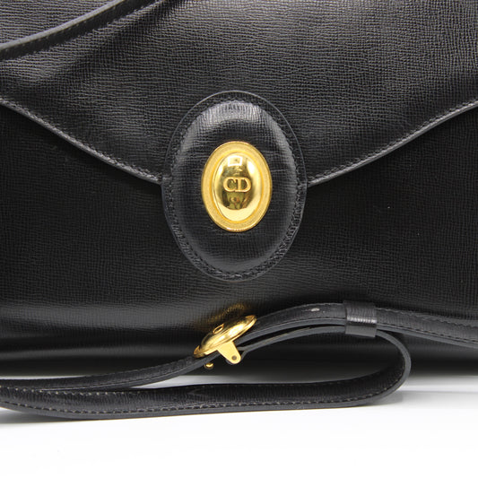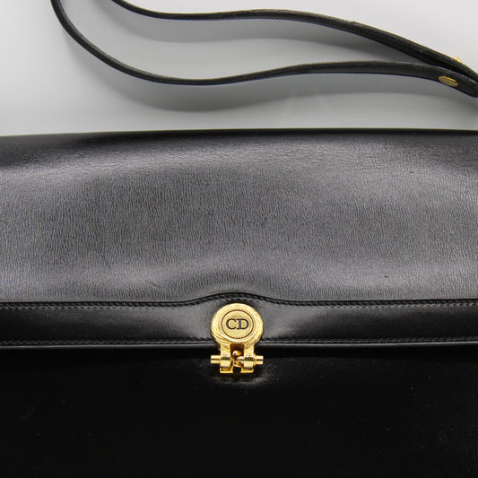 Christian Dior Black Leather Flap Shoulder Bag Gold Logo