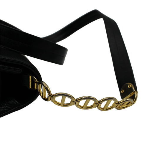 Christian Dior Black Leather Crossbody Bag Gold Logo Chain