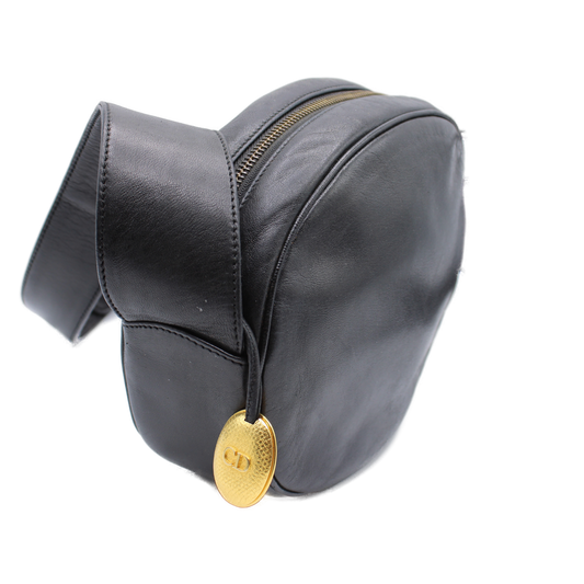 Christian Dior Black Leather Round Crossbody CD Charm Bag Vintage