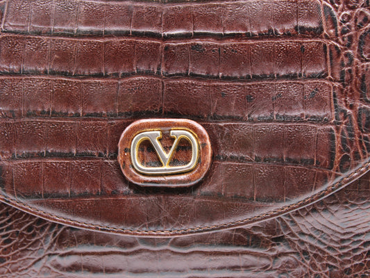 Valentino Garavani Crocodile Embossed Leather Crossbody Bucket Bag Vintage