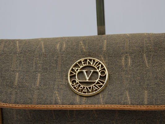 Valentino Garavani Crossbody Brown Cloth Leather Trim Bag Vintage