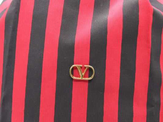 Valentino Garavani Red Black Striped Canvas Drawstring Backpack Bag
