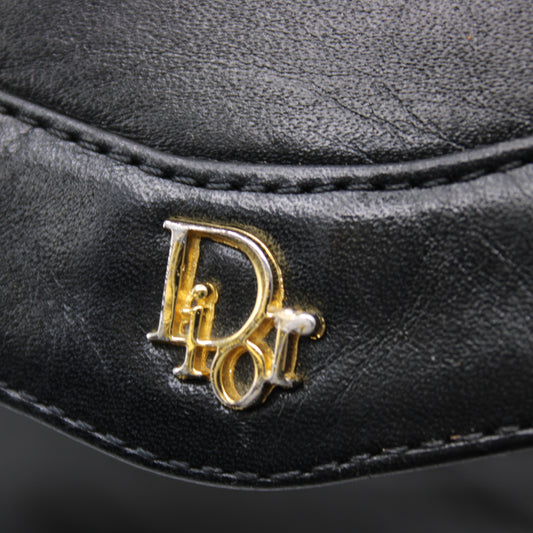 Christian Dior Gold-Tone Metal Logo Black Leather Crossbody Bag Vintage