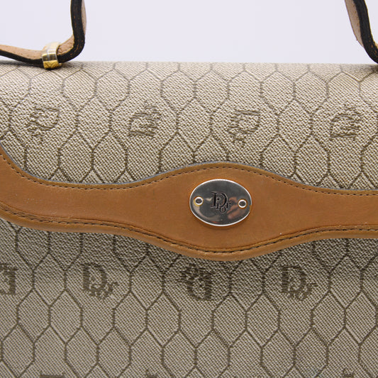Christian Dior Honeycomb Kelly Style Brown Canvas Leather Bag Vintage