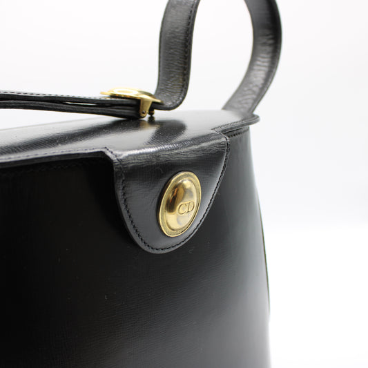 Christian Dior Gold Logo Accent Black Leather Handle Bag