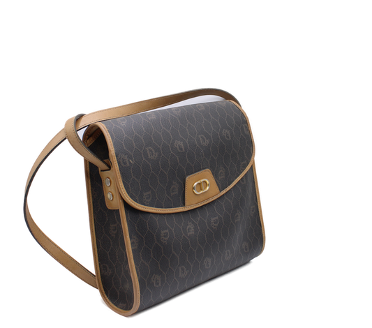 Christian Dior Honeycomb Brown Canvas Square Crossbody Bag Vintage