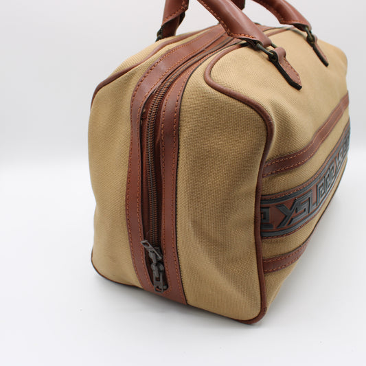 Yves Saint Laurent Tan YSL Canvas Leather Trim Boston Bag