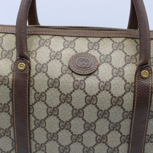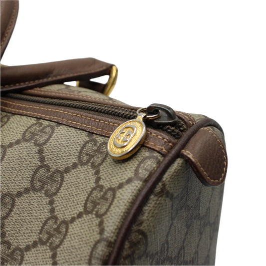Gucci Beige GG Canvas Brown Leather Trim Boston Bag
