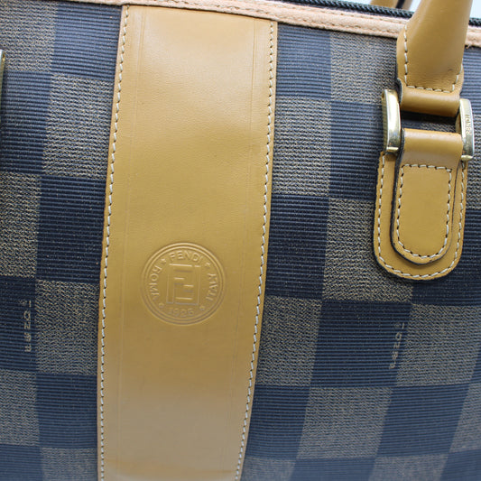 Fendi Brown Checkered Pequin Petite Boston Bag