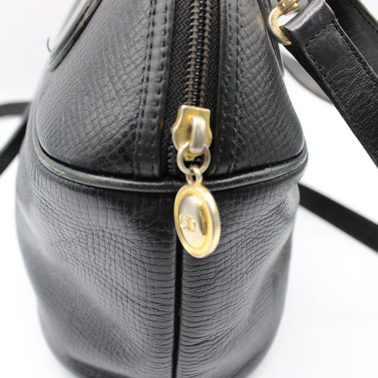 Christian Dior Black Leather Petite Two-Way Boston Bag