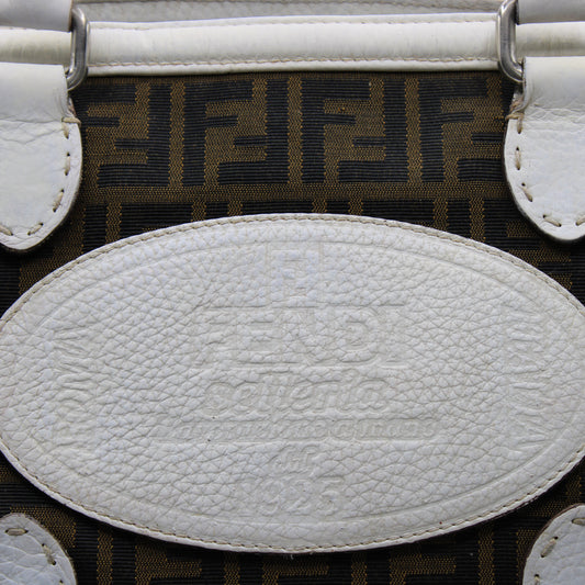 Fendi Brown Zucca Selleria Boston Tote Bag White Leather Trim