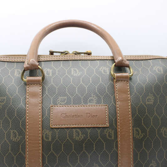 Christian Dior Brown Honeycomb Canvas Leather Boston Bag