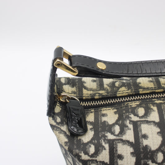 Christian Dior Black Trotter Canvas Patent Leather Handle Handbag