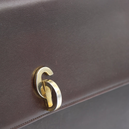 Christian Dior Brown Leather Flap Shoulder Bag With Gold Clasp Closure
