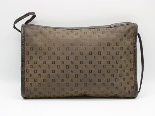 Fendi Brown Canvas Leather FF Zucchino Jacquard Crossbody Bag Vintage