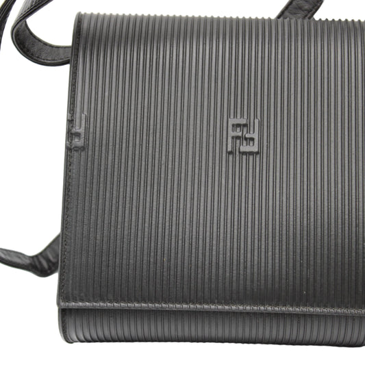 Fendi Black Leather Flap Embossed Logo Crossbody Bag