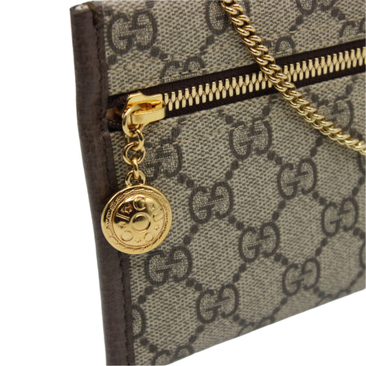 Gucci Beige GG Canvas Leather Trim Chain Clutch Bag