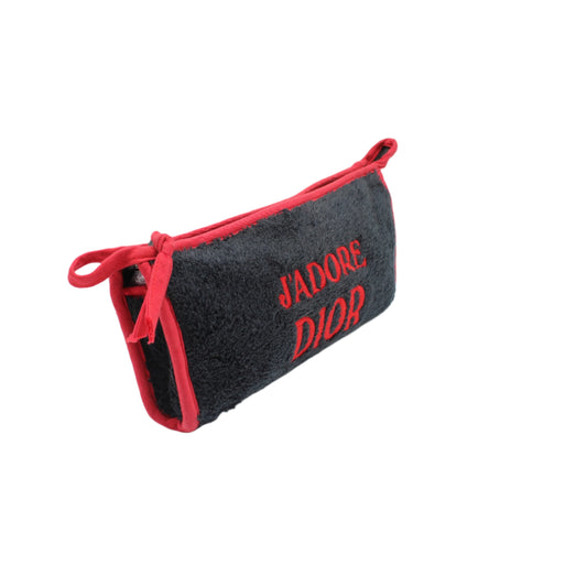 Christian Dior Black Red Terry Cloth J'Adore Dior Pouch Bag