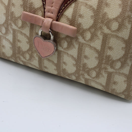 Christian Dior Beige Pink Canvas Romantique Pouch Clutch Bag