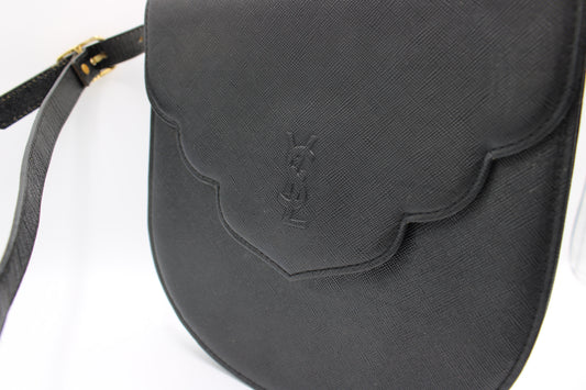 Yves Saint Laurent Black Leather Logo Flap Crossbody Bag