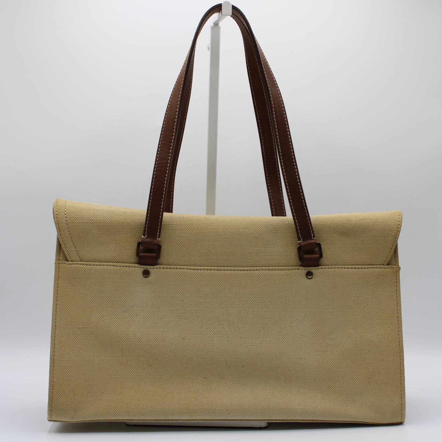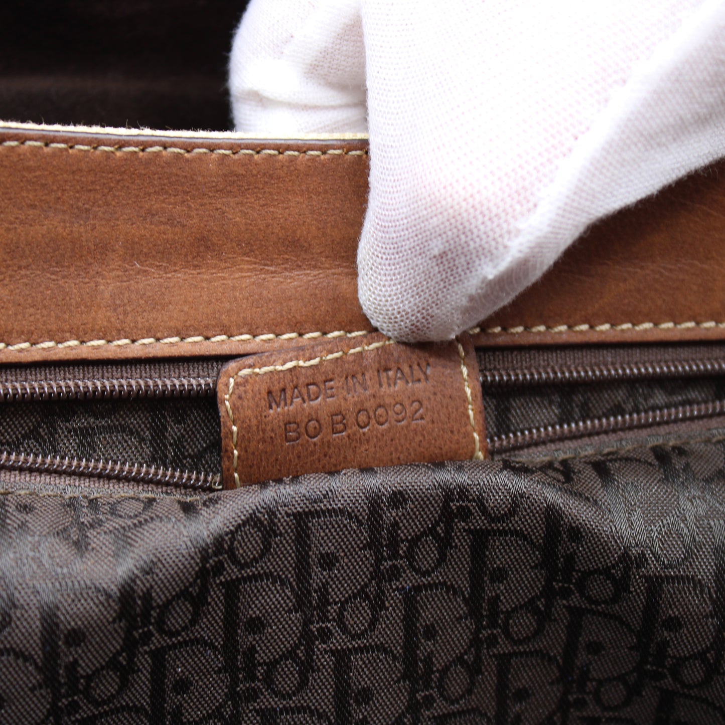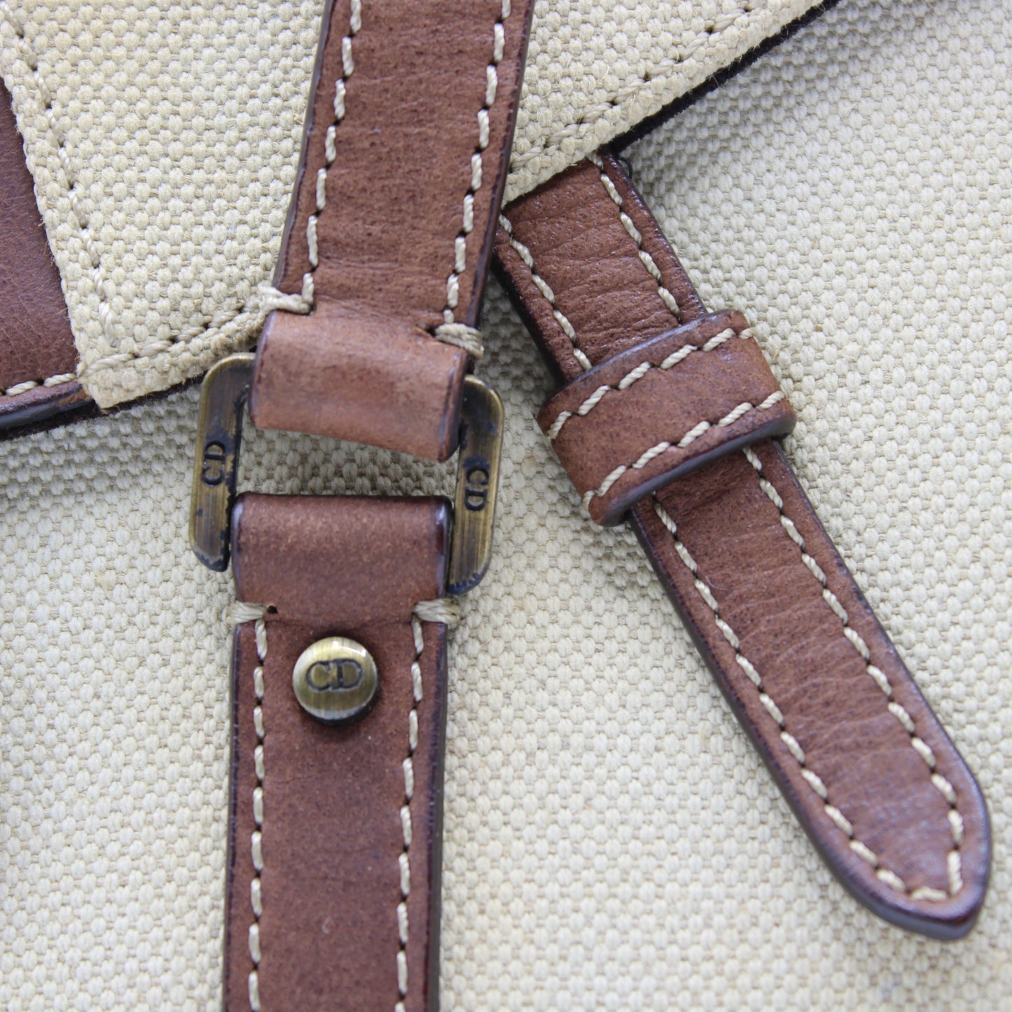 Christian Dior Beige Canvas Brown Leather Saddle Tote Bag