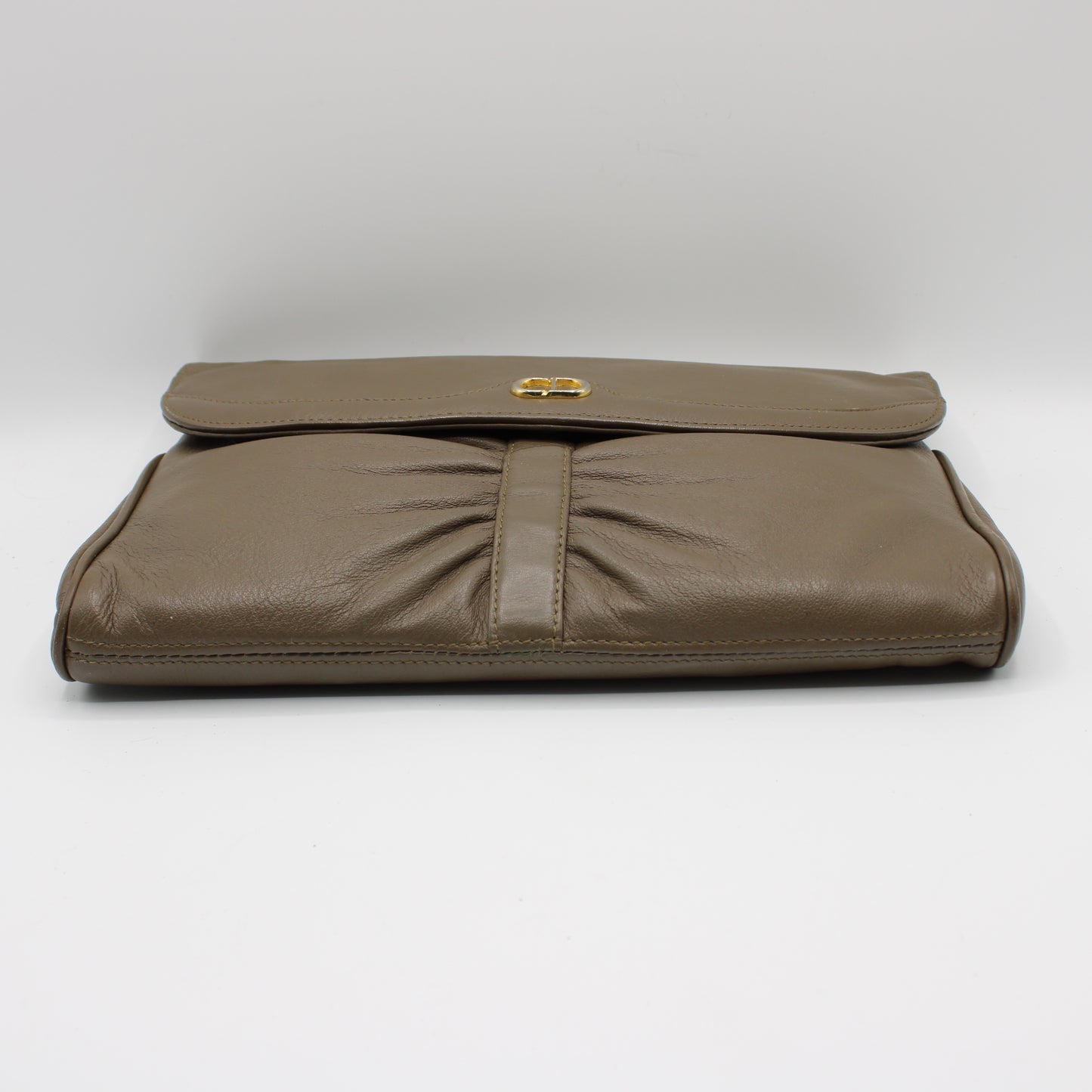 Christian Dior Beige Leather Clutch with Logo on Flap Bag
