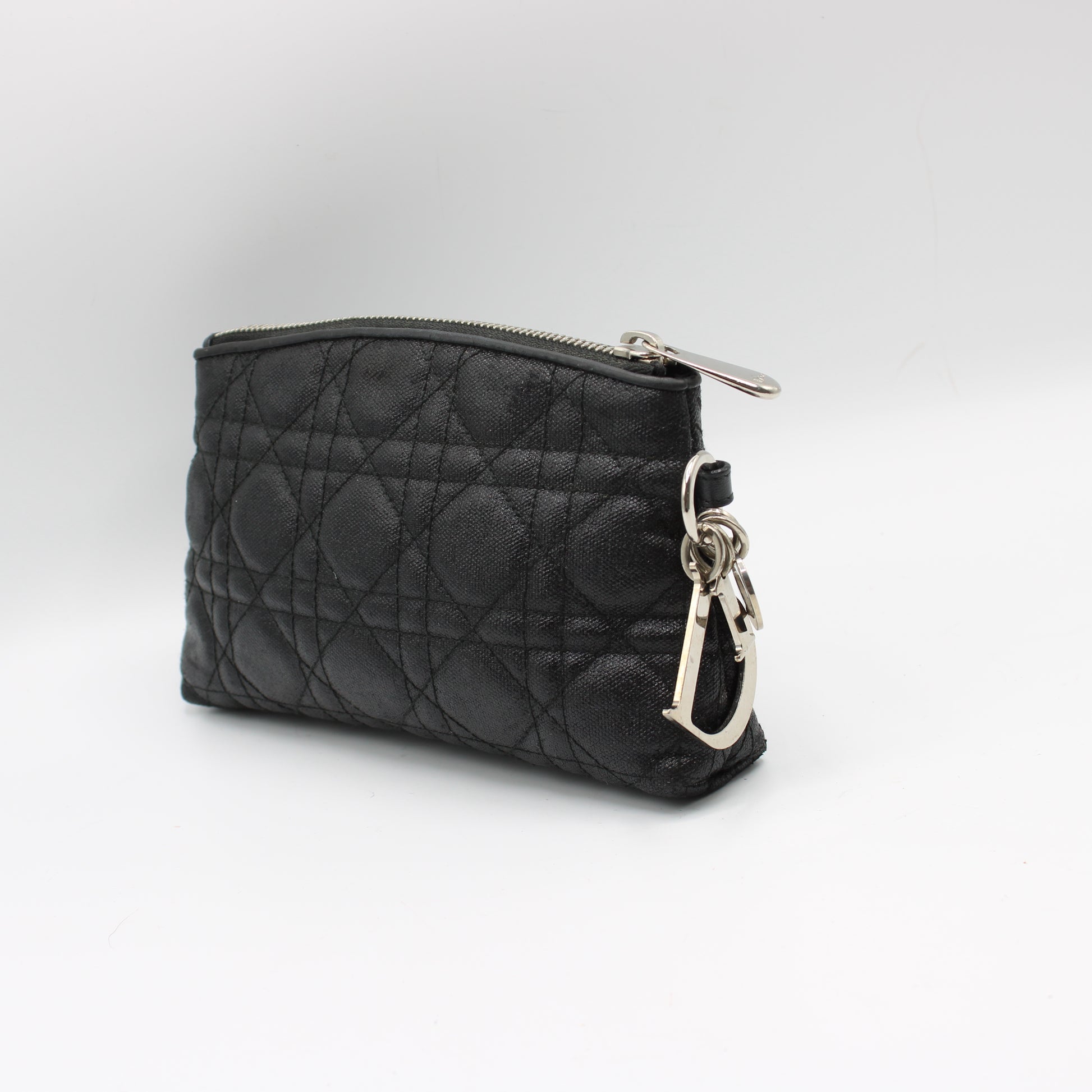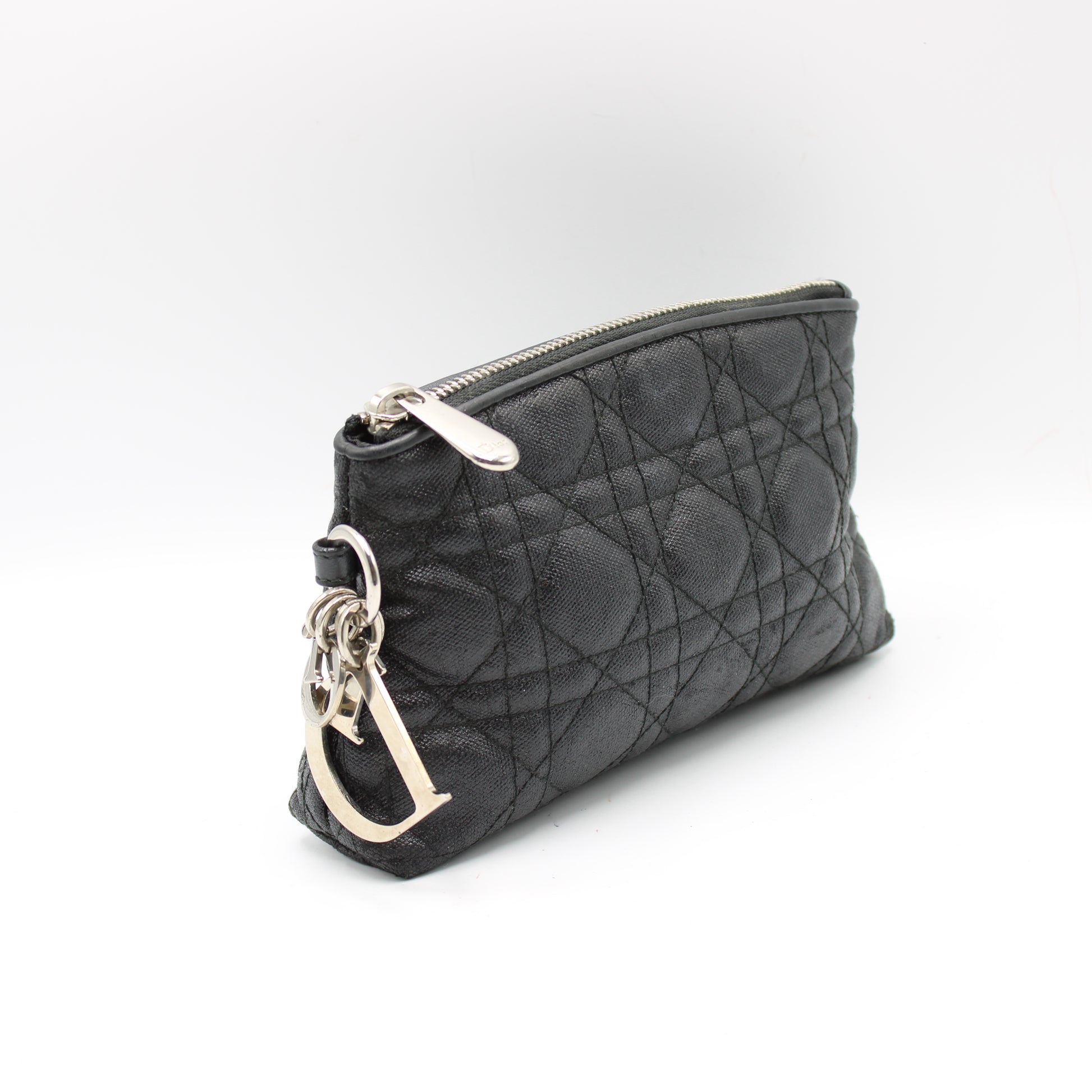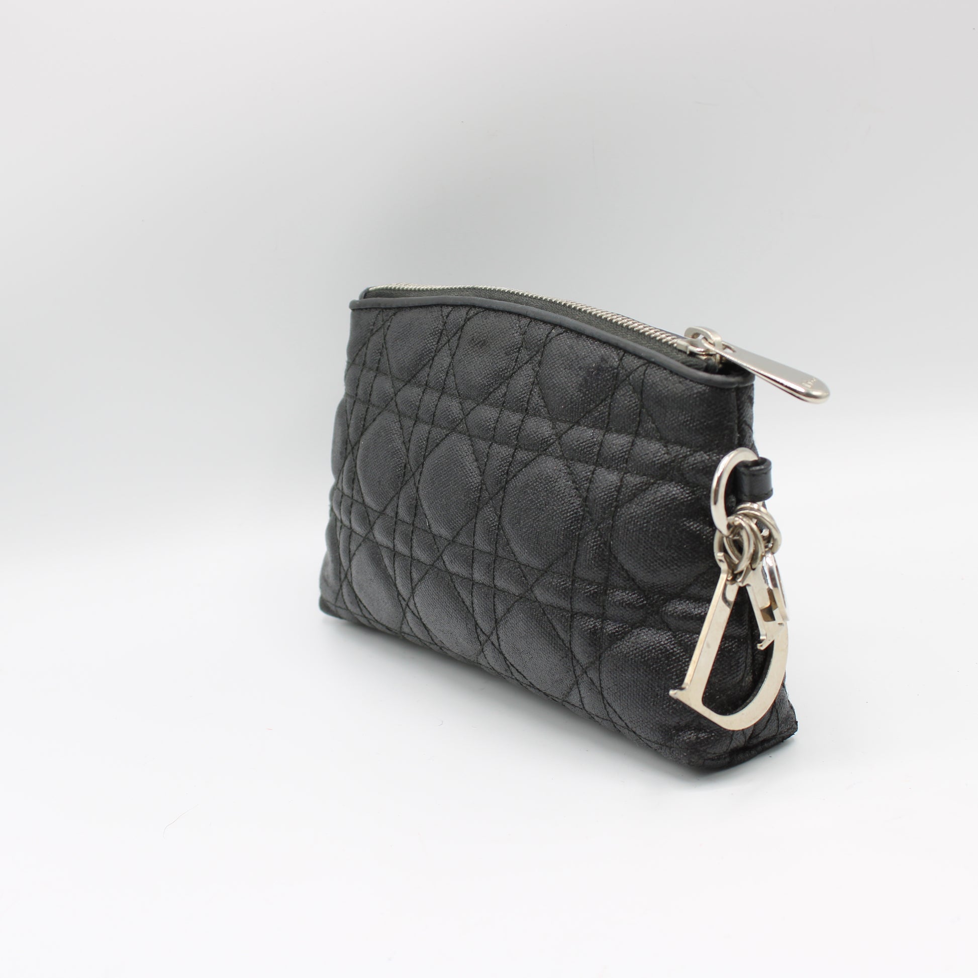 Christian Dior Black Cloth Cannage Lady Dior Pouch Clutch