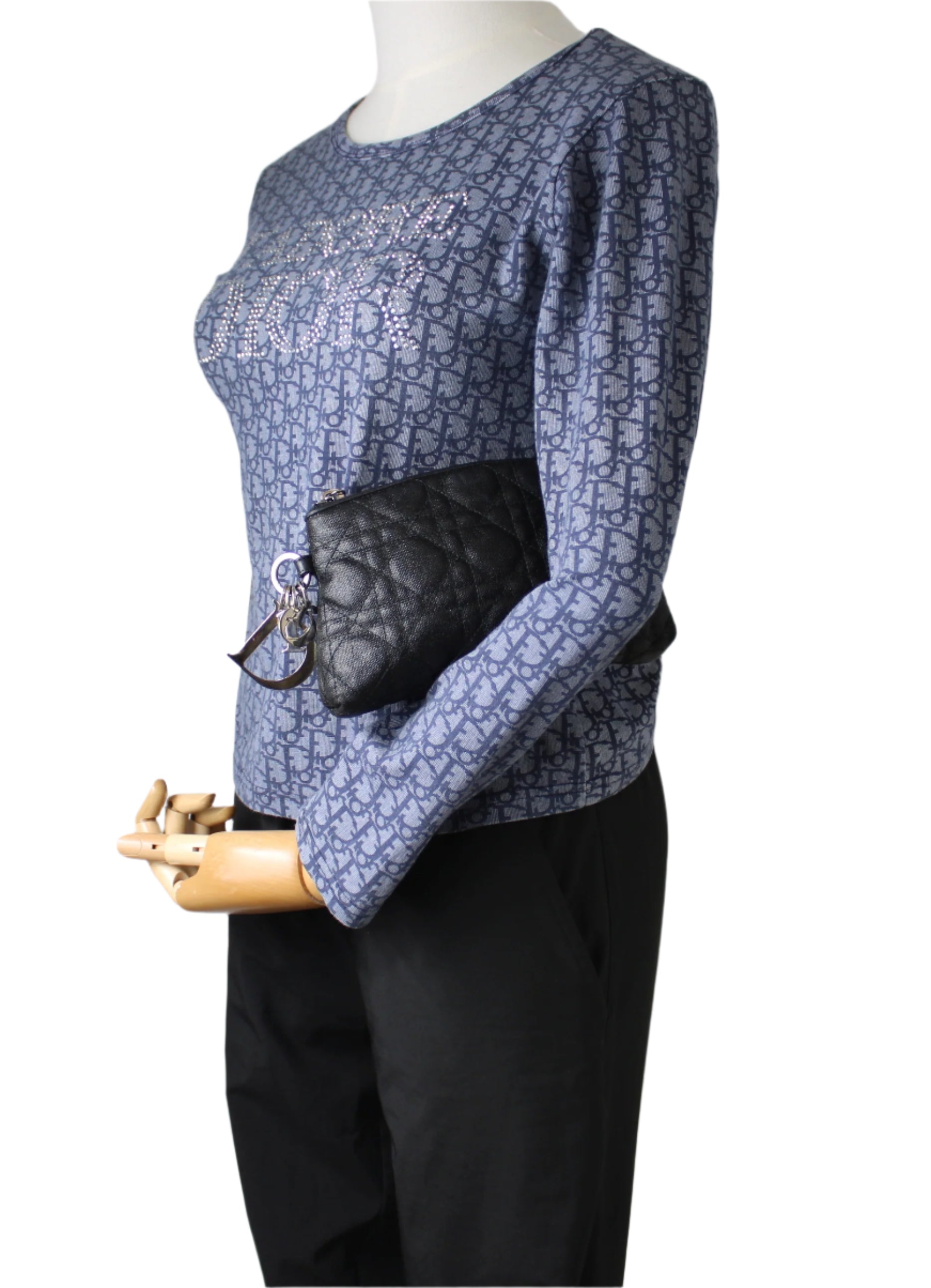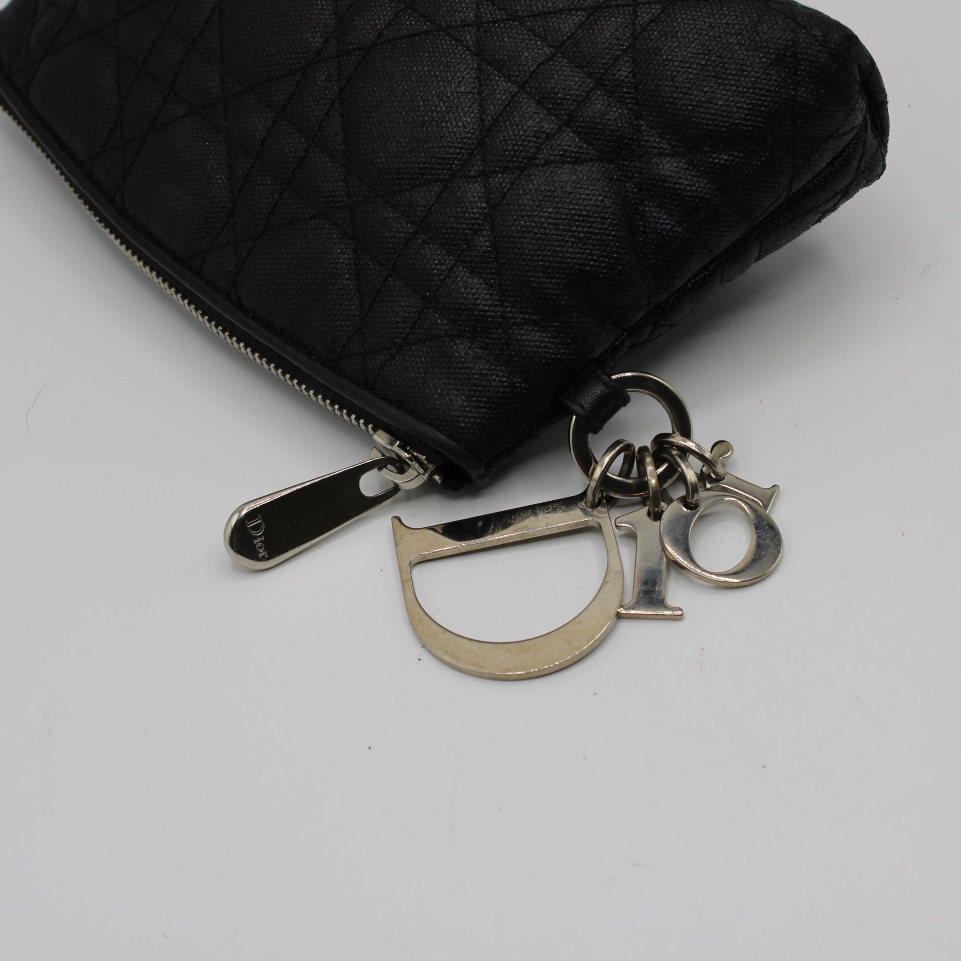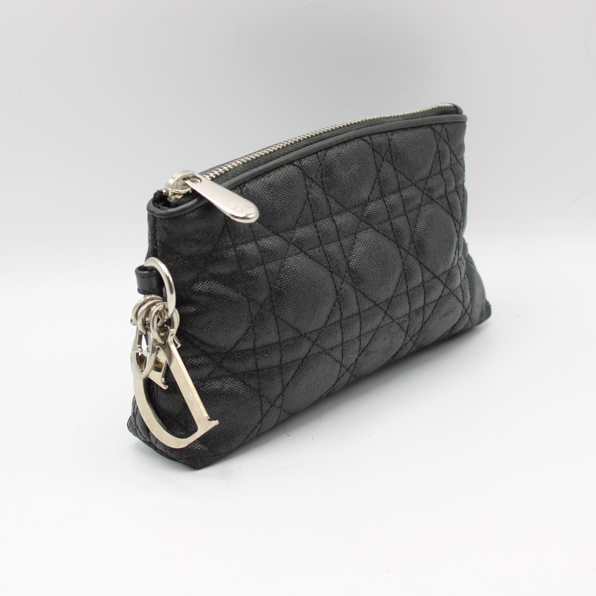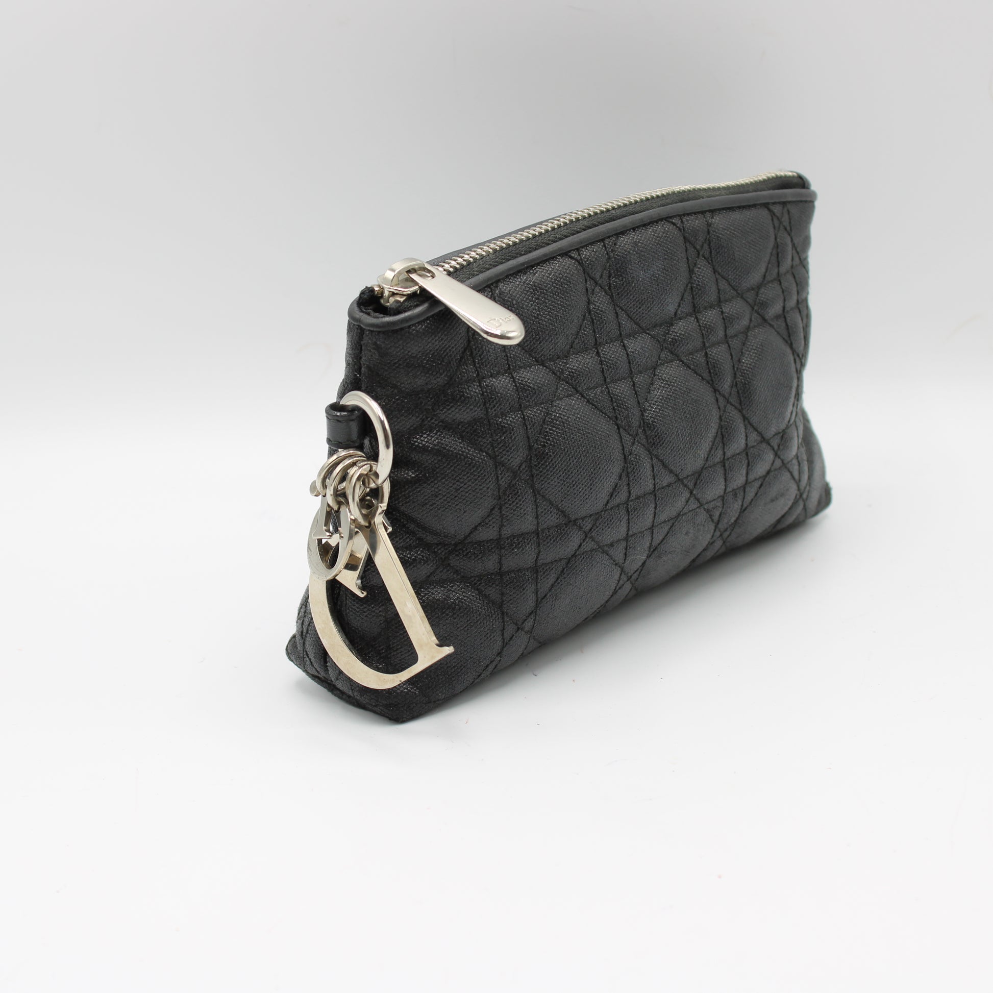 Christian Dior Black Cloth Cannage Lady Dior Pouch Clutch